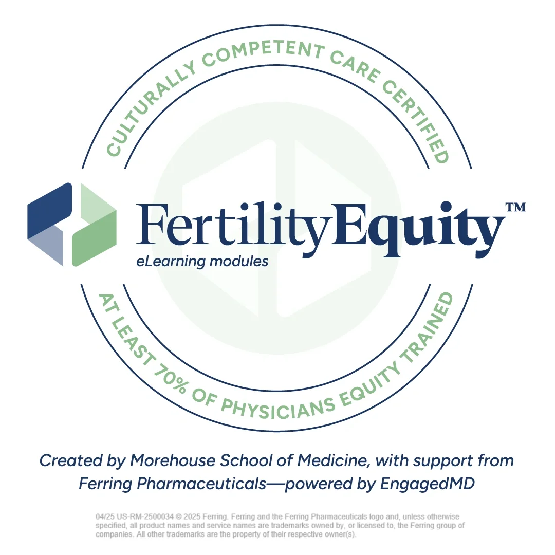 The FertilityEquity™ program was developed by Morehouse School of Medicine, supported by Ferring Pharmaceuticals, and powered by EngagedMD. It’s an educational initiative designed to address disparities in fertility care and ensure that providers deliver inclusive, patient-centered treatment.